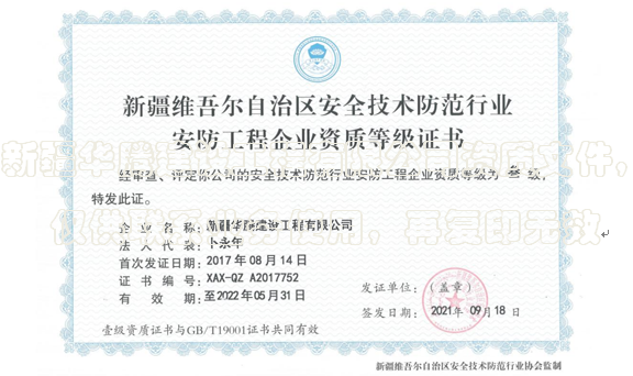 安防工程企業(yè)資質(zhì)等級(jí)證書(shū)